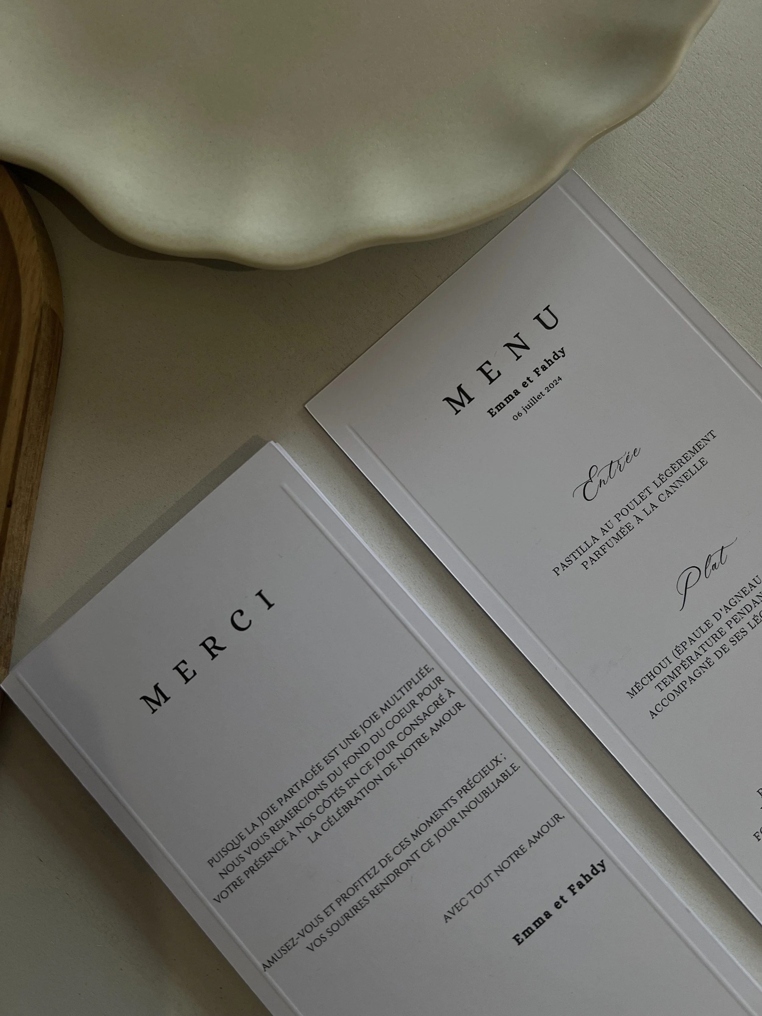 Découvrez notre sélection de papiers d’exception, choisis avec soin pour sublimer chaque détail de votre papeterie évènementielle.